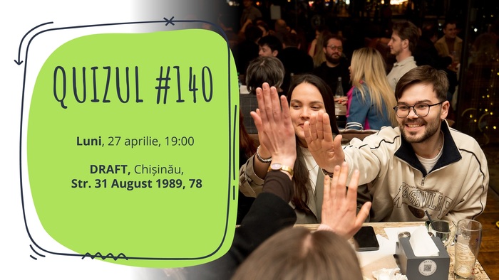 Luni, 6 aprilie, vă invităm la Quizul #139! Jocul va avea loc de la 19:00 la Chișinău, la DRAFT...