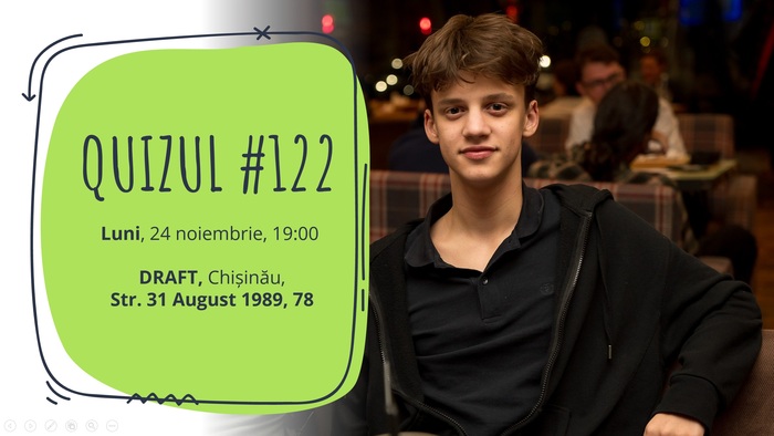 Luni, 24 noiembrie, vă așteptăm la Quizul #122, care va avea loc de la 19:00 la Chișinău, la...