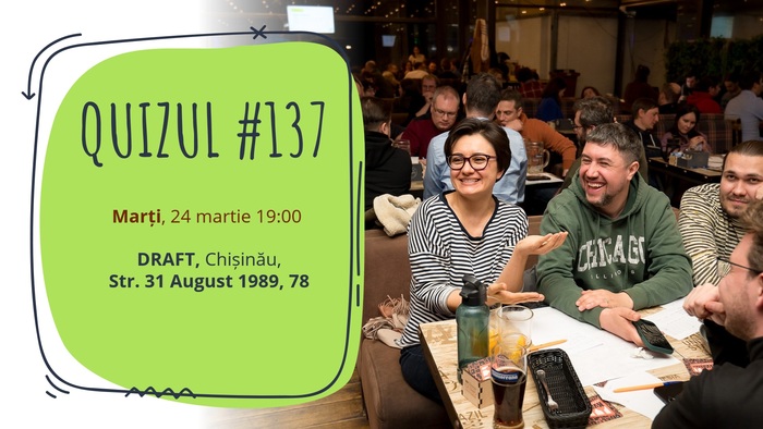 Luni, 9 martie, vă invităm la Quizul #135! Jocul va avea loc de la 19:00 la Chișinău, la DRAFT...