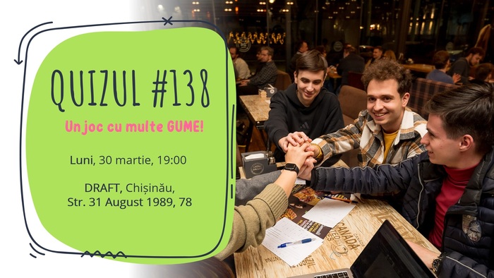 Luni, 2 martie, vă invităm la Quizul #134! Jocul va avea loc de la 19:00 la Chișinău, la DRAFT...