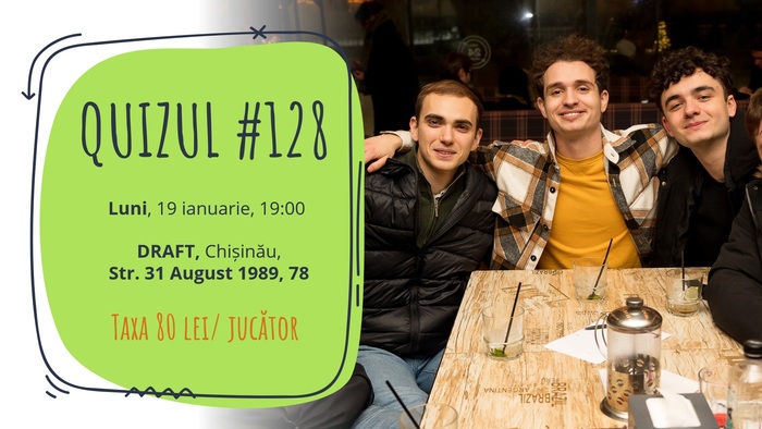 Luni, 19 ianuarie, vă invităm la Quizul #128! Jocul va avea loc de la 19:00 la Chișinău, la DRAFT...