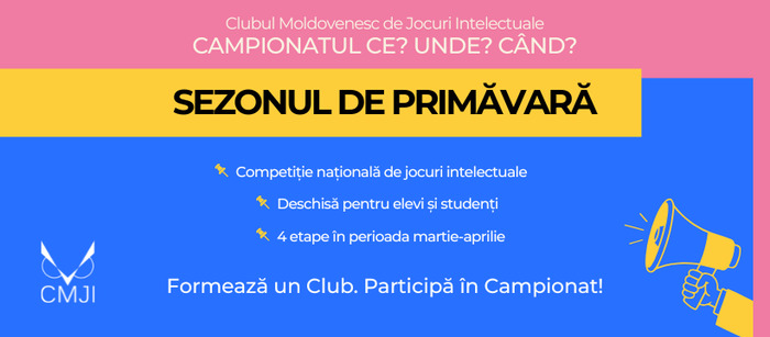În perioada martie - aprilie 2026, Clubul Moldovenesc de Jocuri Intelectuale organizează o nouă ediție a Campionatului „Ce? Unde? Când?”, desfășurată în trei subdiviziuni: Divizia Liceală, Liga...