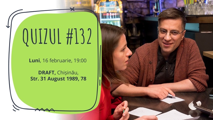 Luni, 16 februarie, vă invităm la Quizul #132! Jocul va avea loc de la 19:00 la Chișinău, la DRAFT Centru (str. 31 august 1989, 78). Vom juca în...