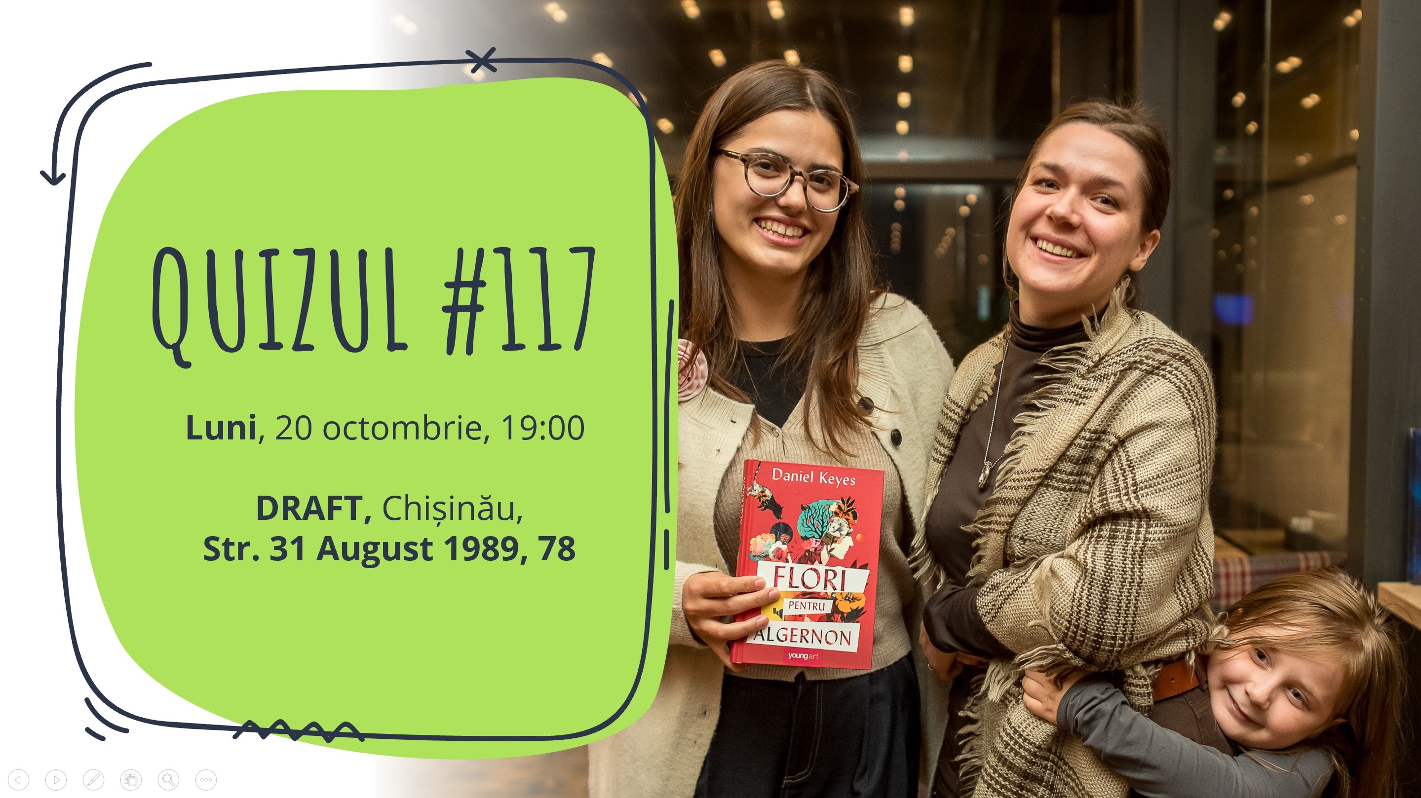 Luni, 20 octombrie, vă așteptăm la Quizul #117, care va avea loc de la 19:00 la Chișinău, la DRAFT Centru (str. 31 august 1989, 78).